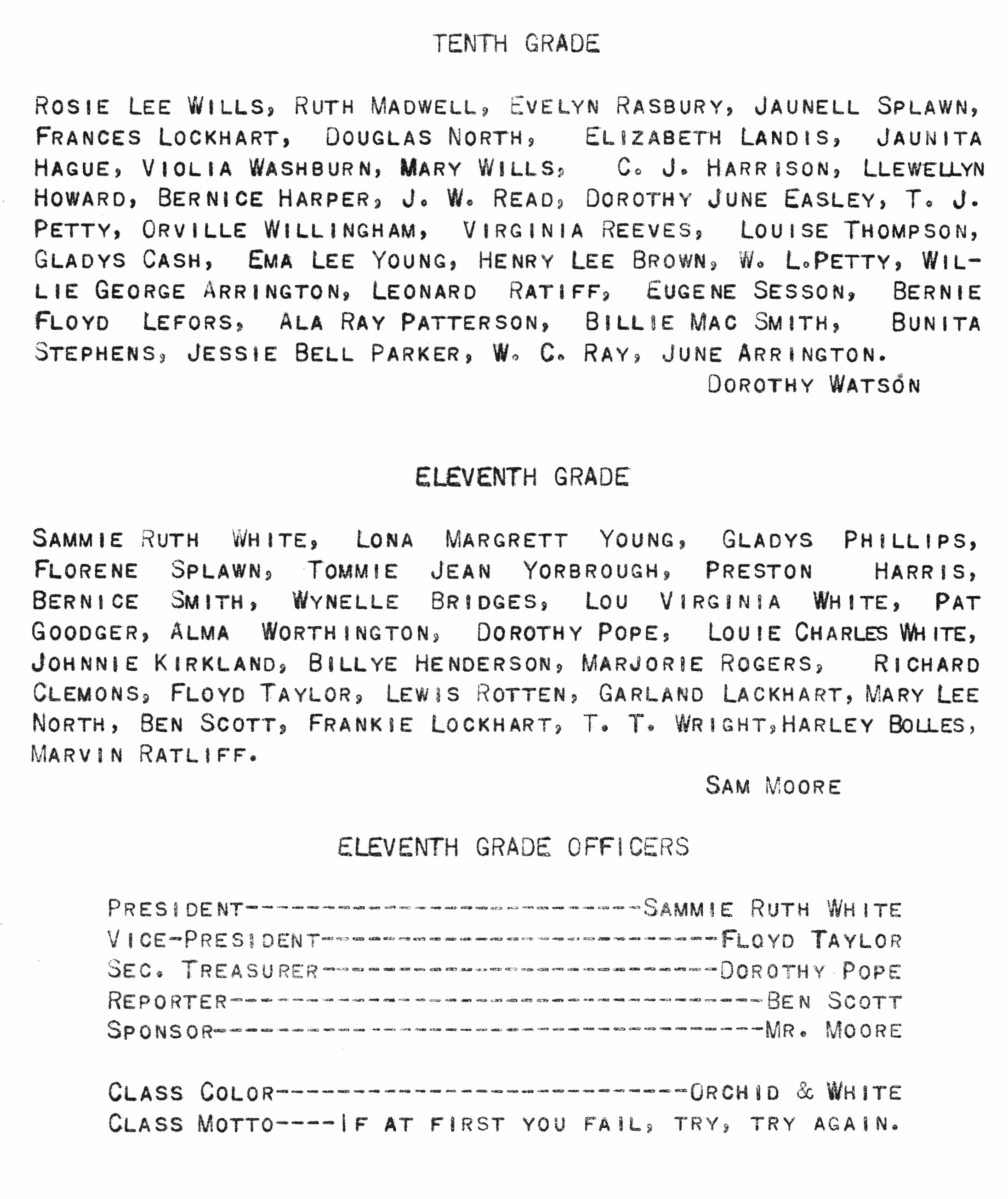 Rasburry, Evelyn 1939 Boyd 7th Grade Officer List