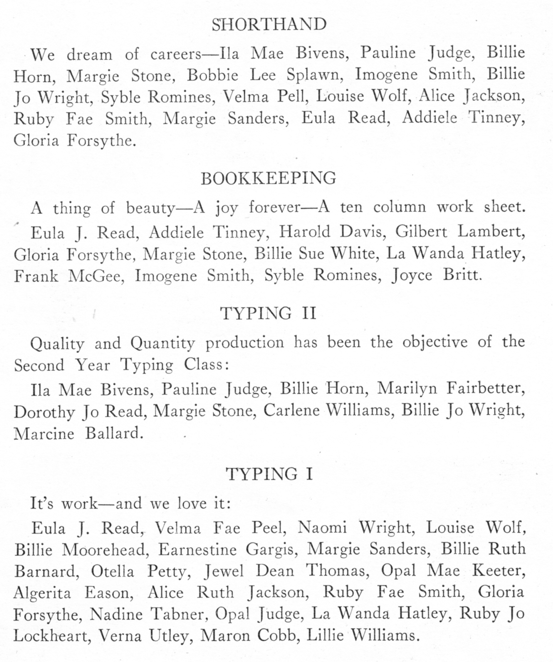 Rasbury, Evelyn 1941 Boyd Sophomore Pictures/No Names