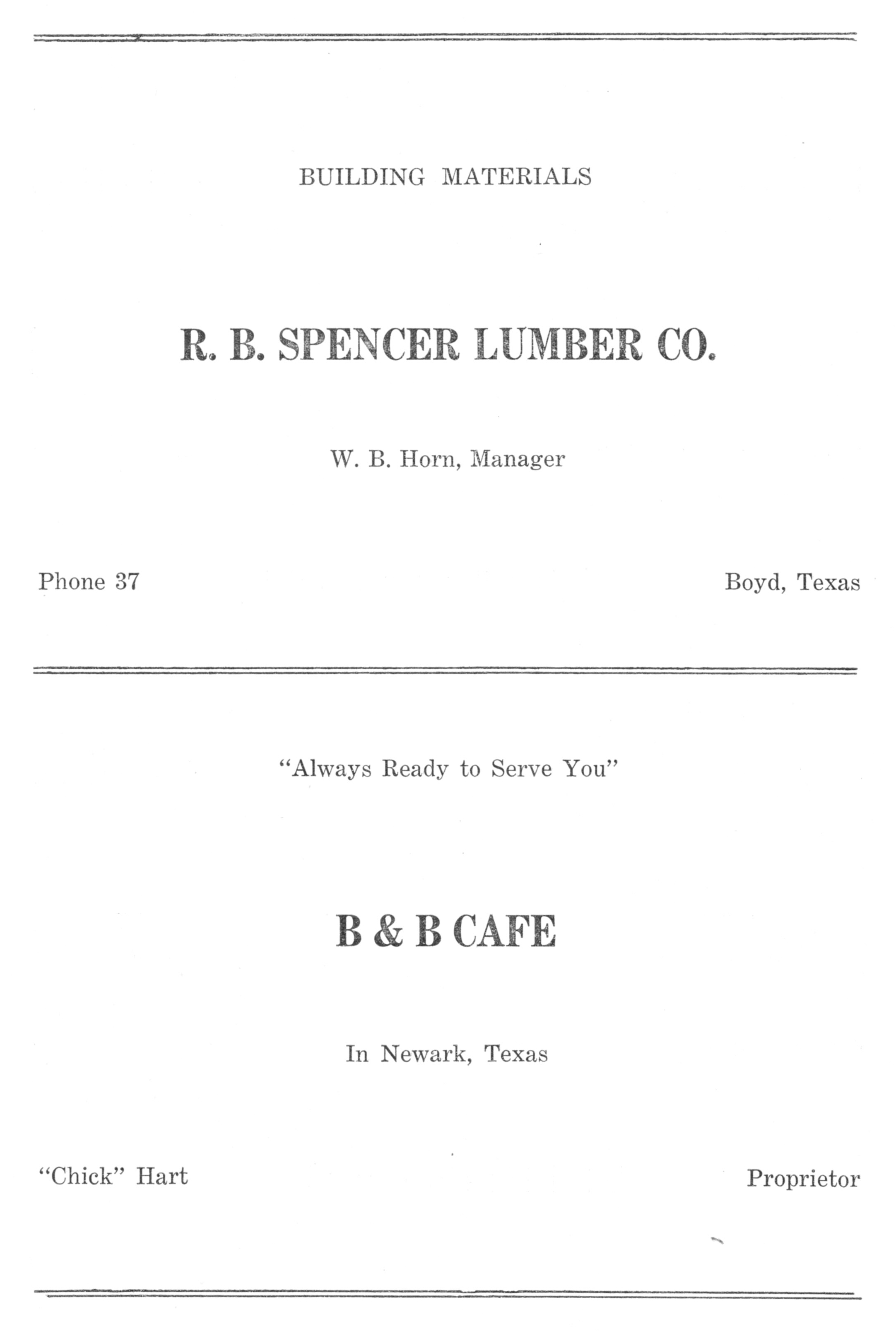 R.B. Spenser Lumber Co.-W.B. Horn 1945 Boyd Advertising