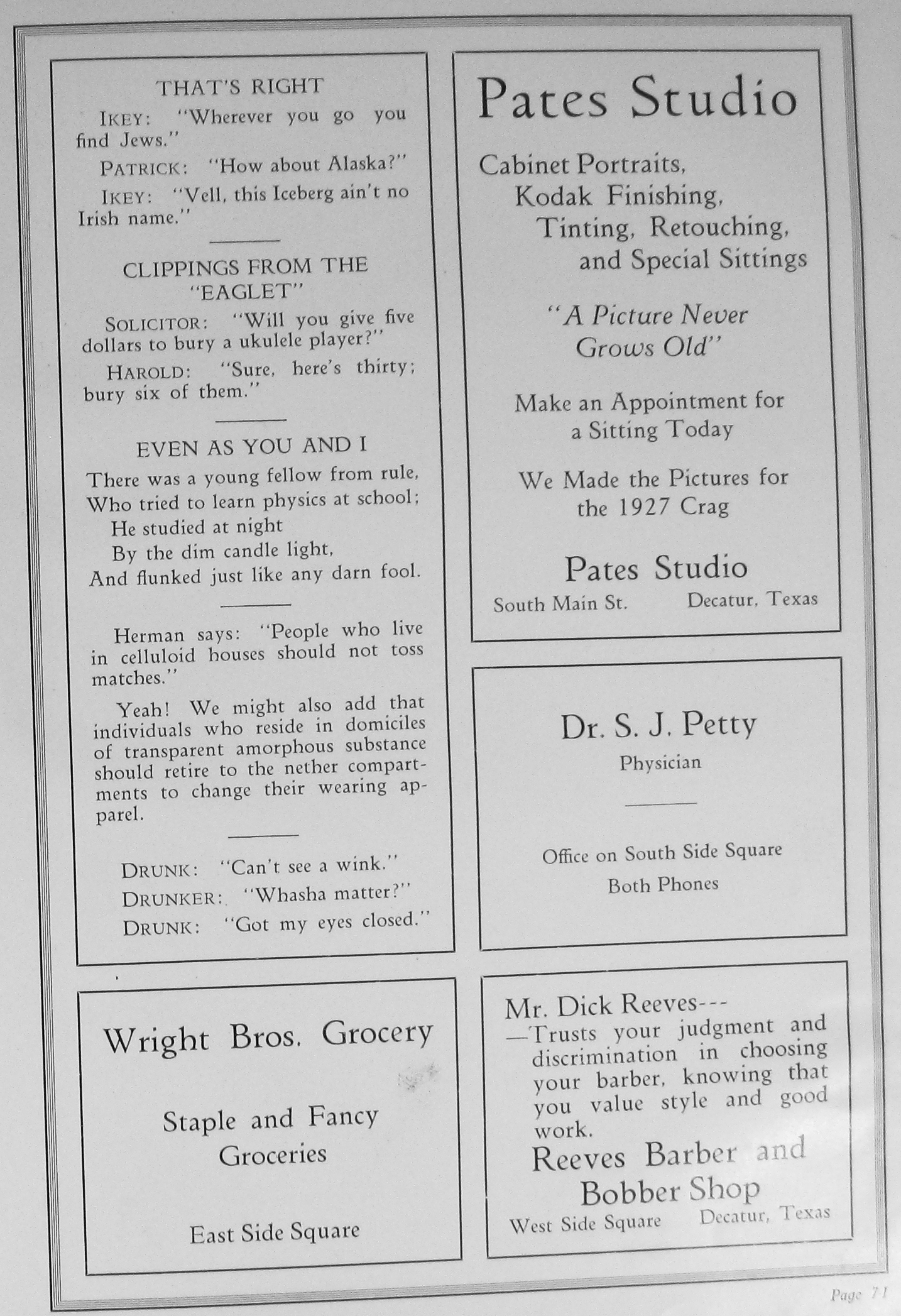 Decatur Cash Grocery 1927 DHS Advertisement