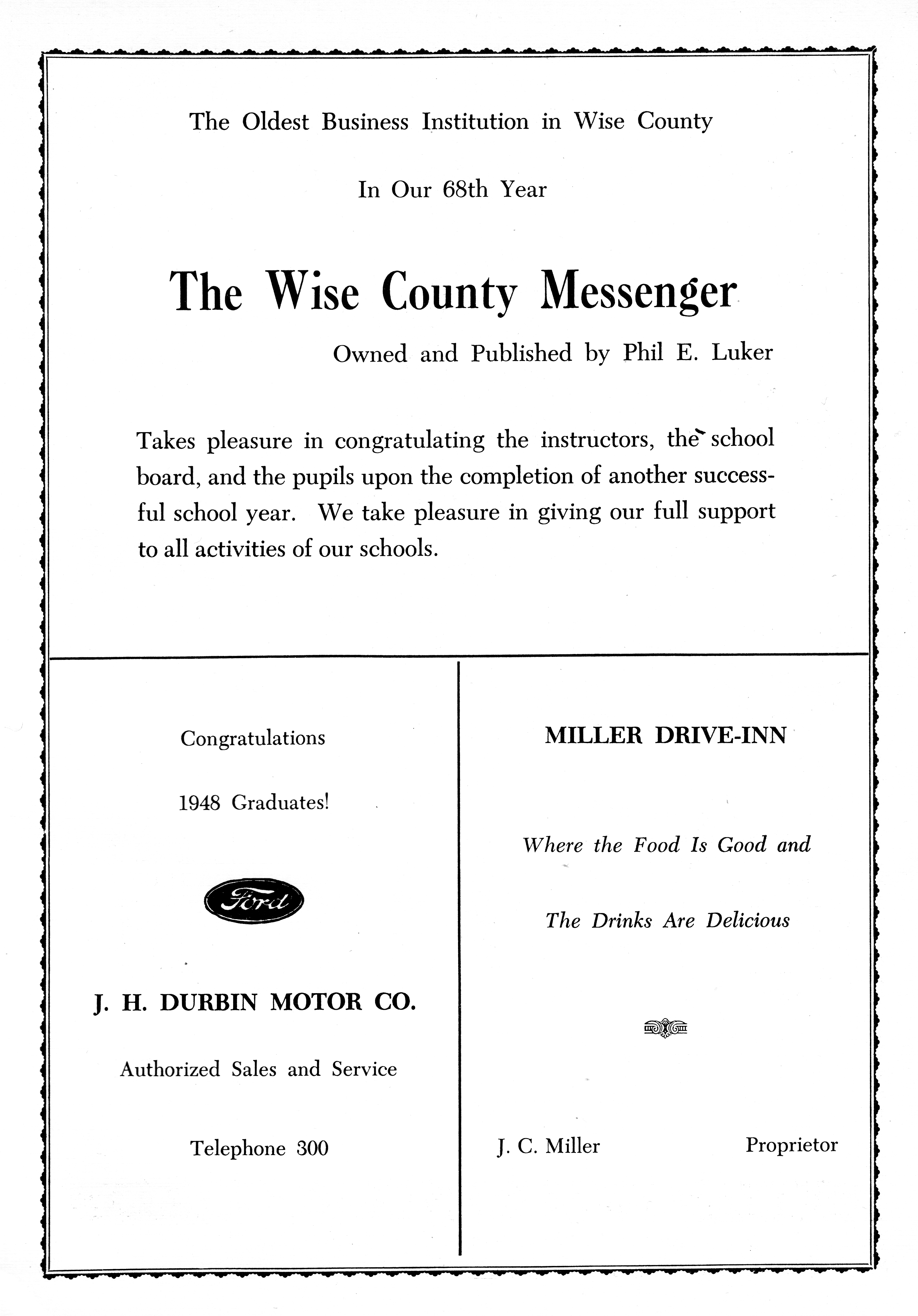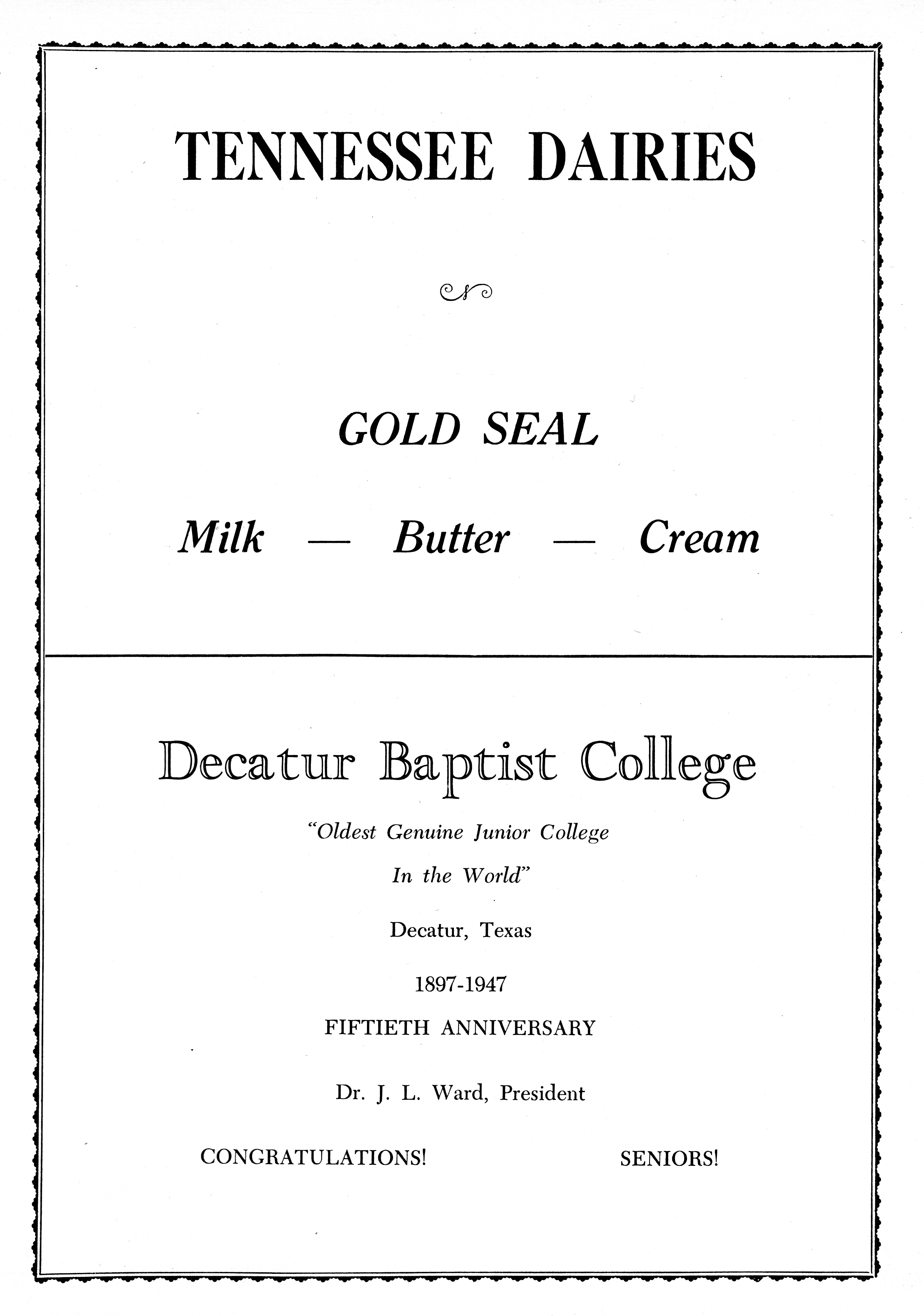 Decatur Baptist College - Dr. J.L. Ward 1948 DHS Advertisement