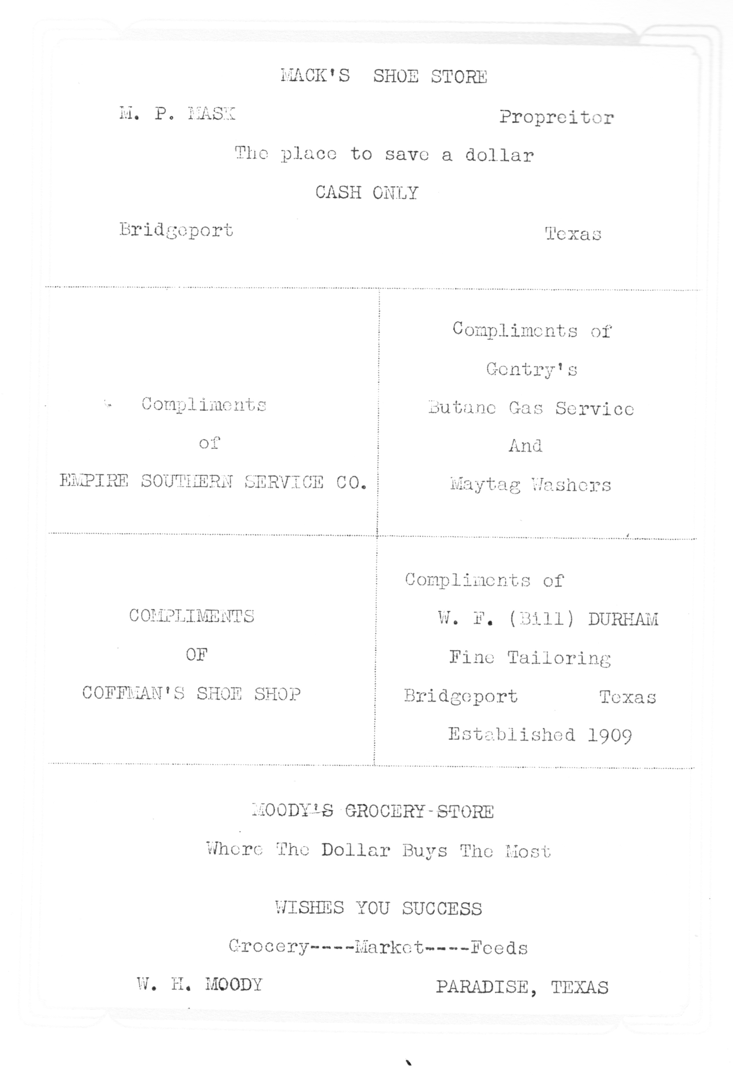 Shamburger Lumber Co. 1950 PHS Advertisement