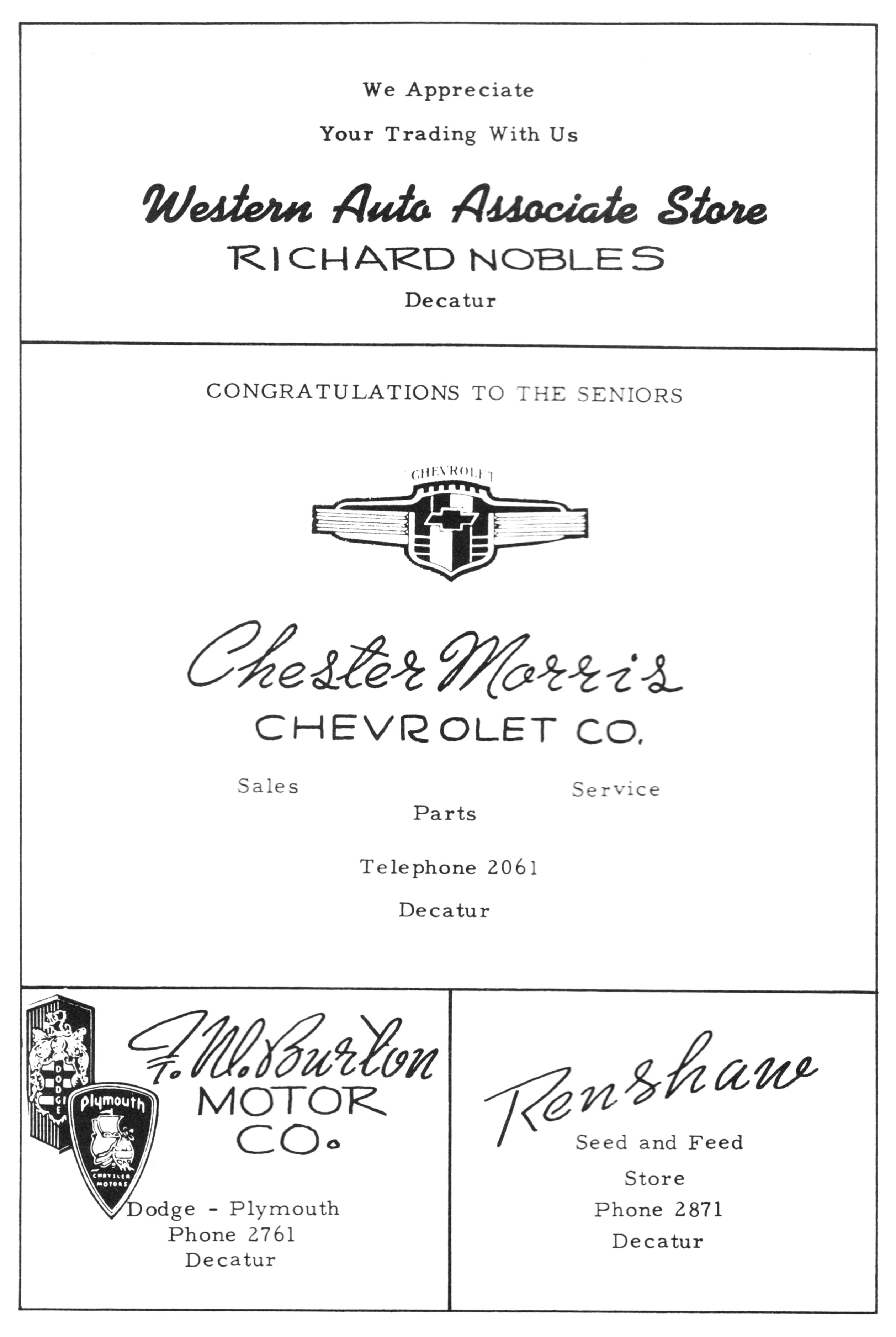 Shamburger Lumber Co. 1953 PHS Advertisement