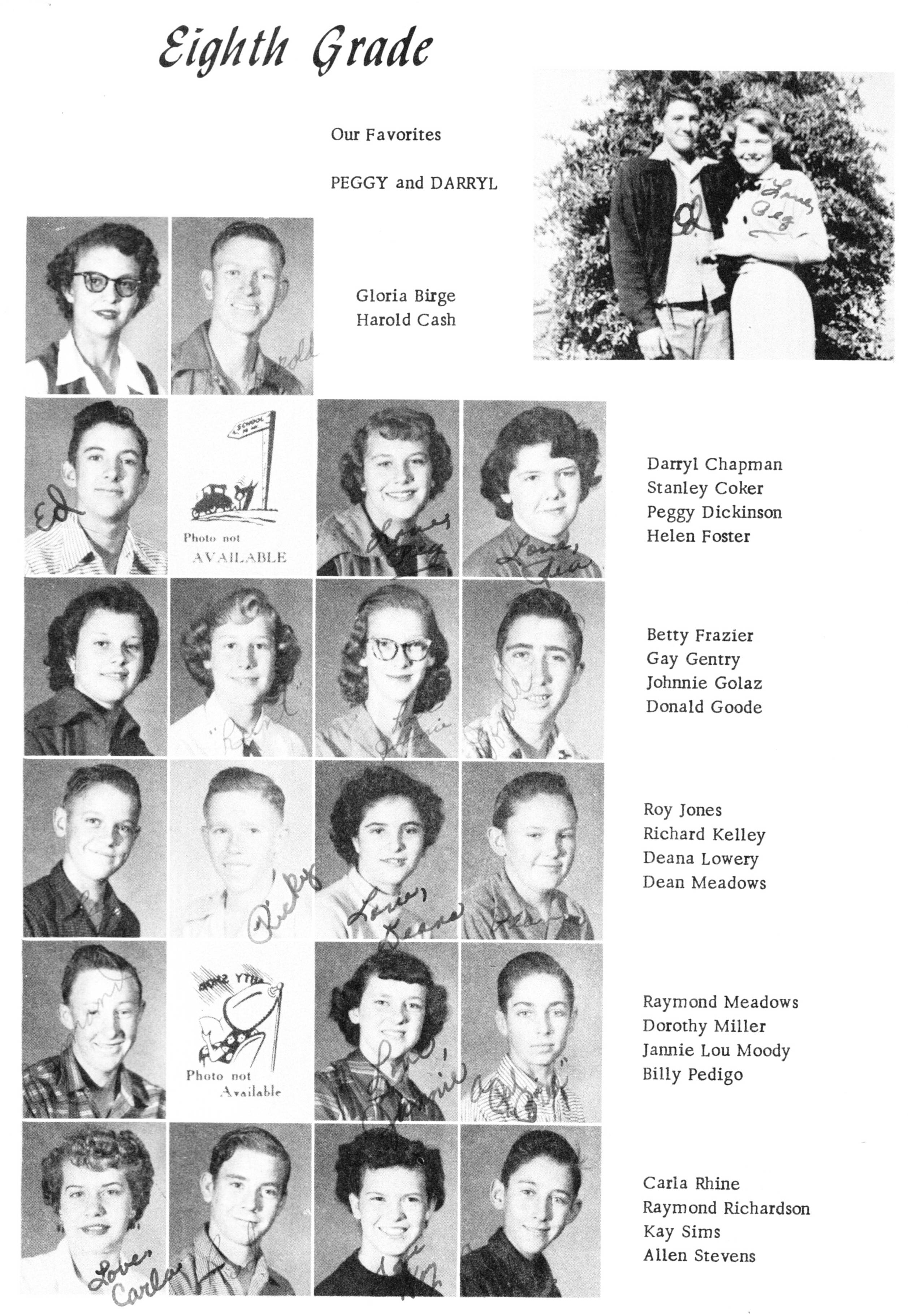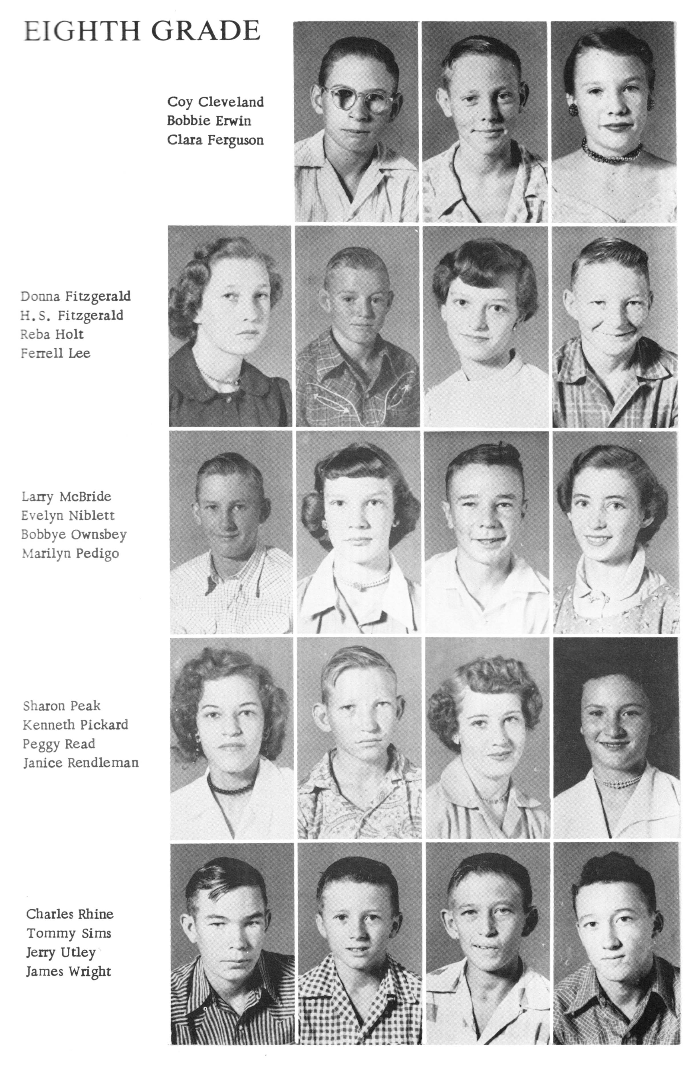 Bobbie Dean 1950 PHS 8th Grade Picture