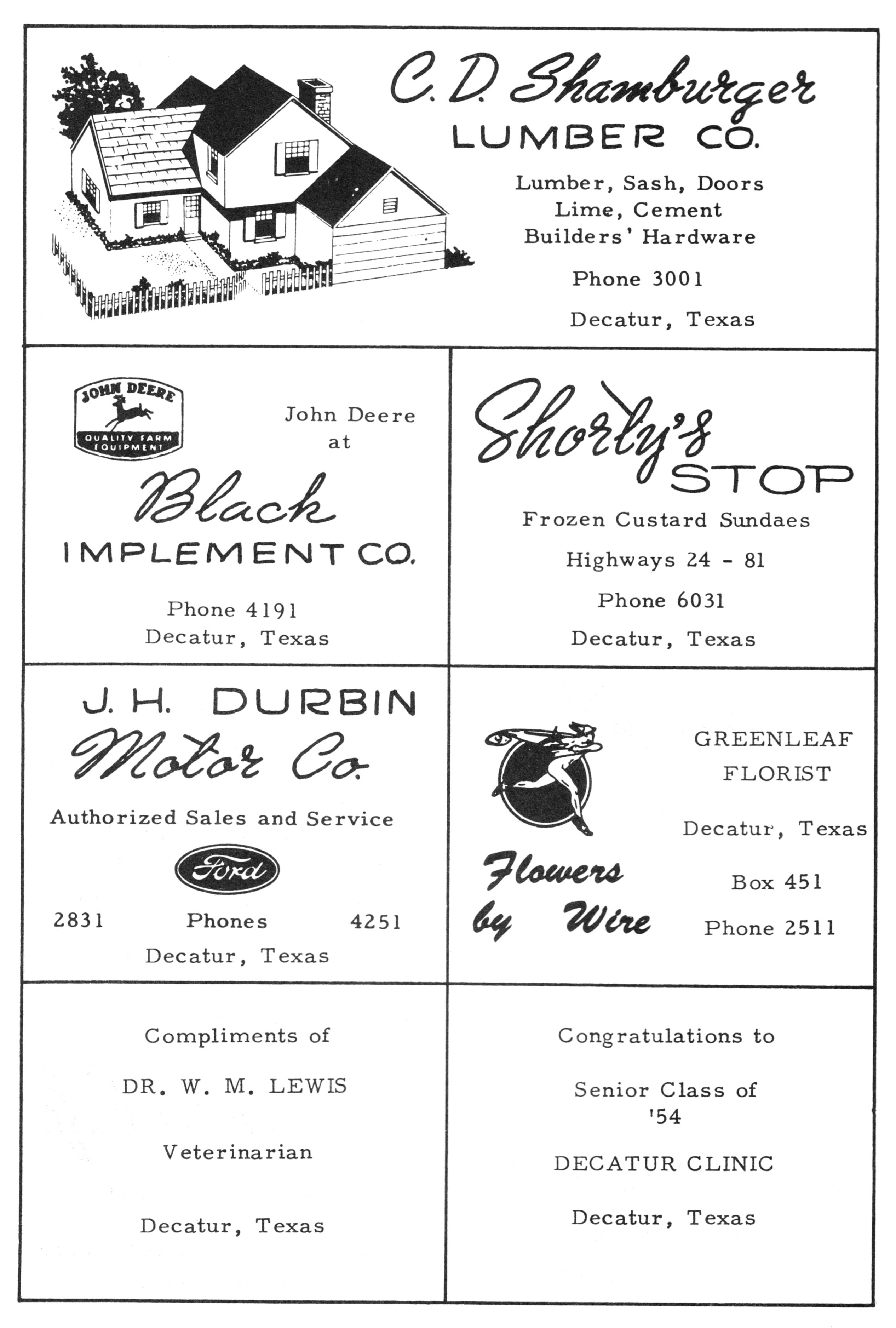 Shamburger Lumber Co. 1954 PHS Advertisement
