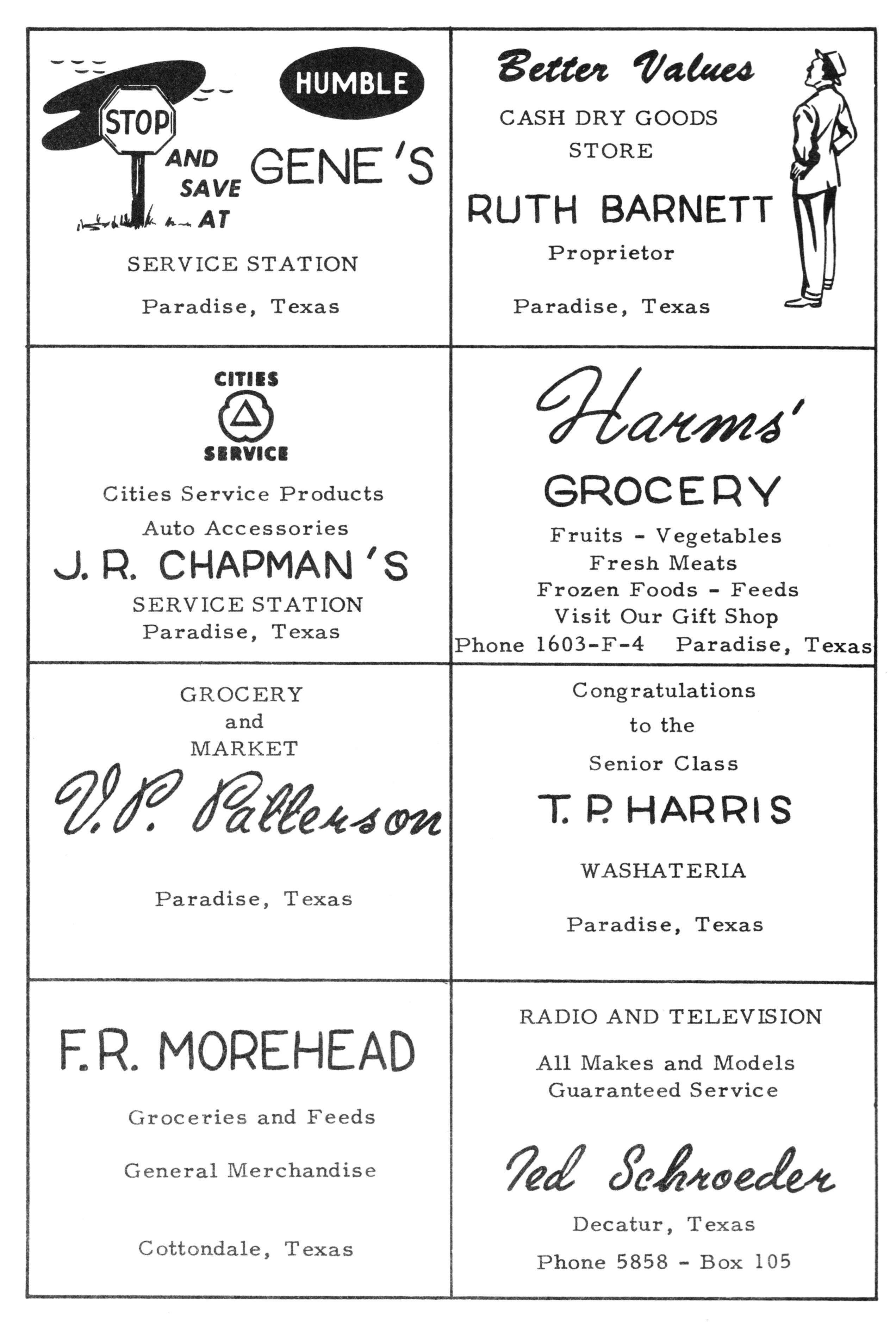 Hartnett Co. Groceries 1954 PHS Advertisement
