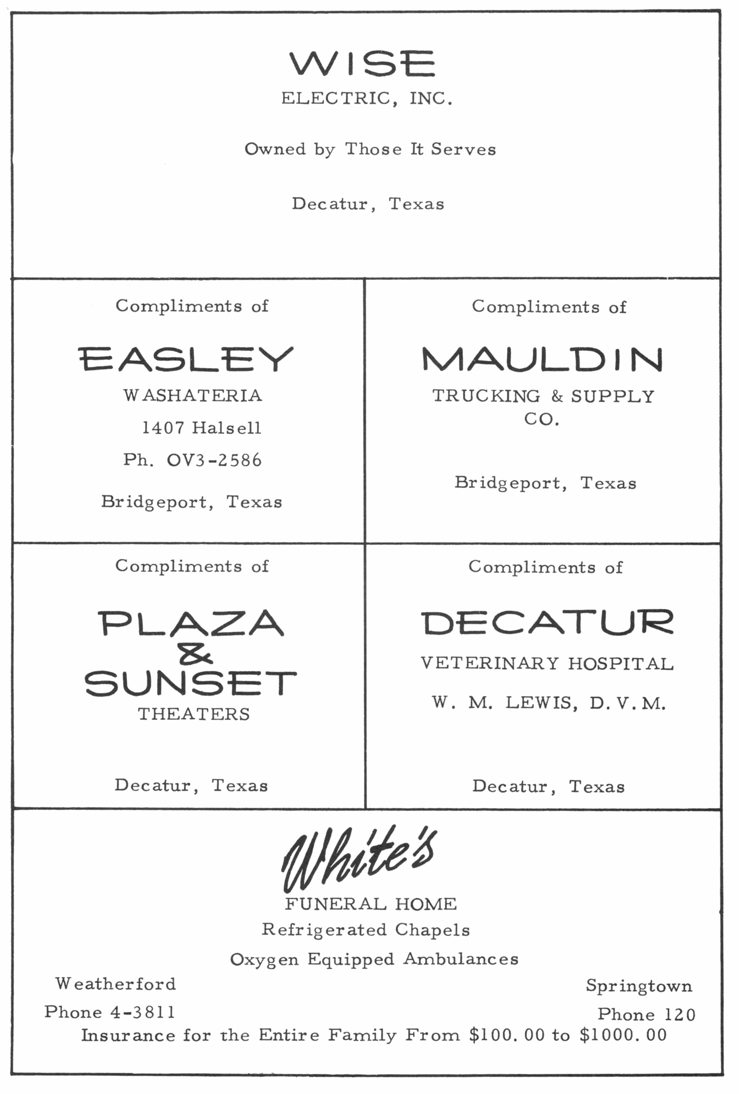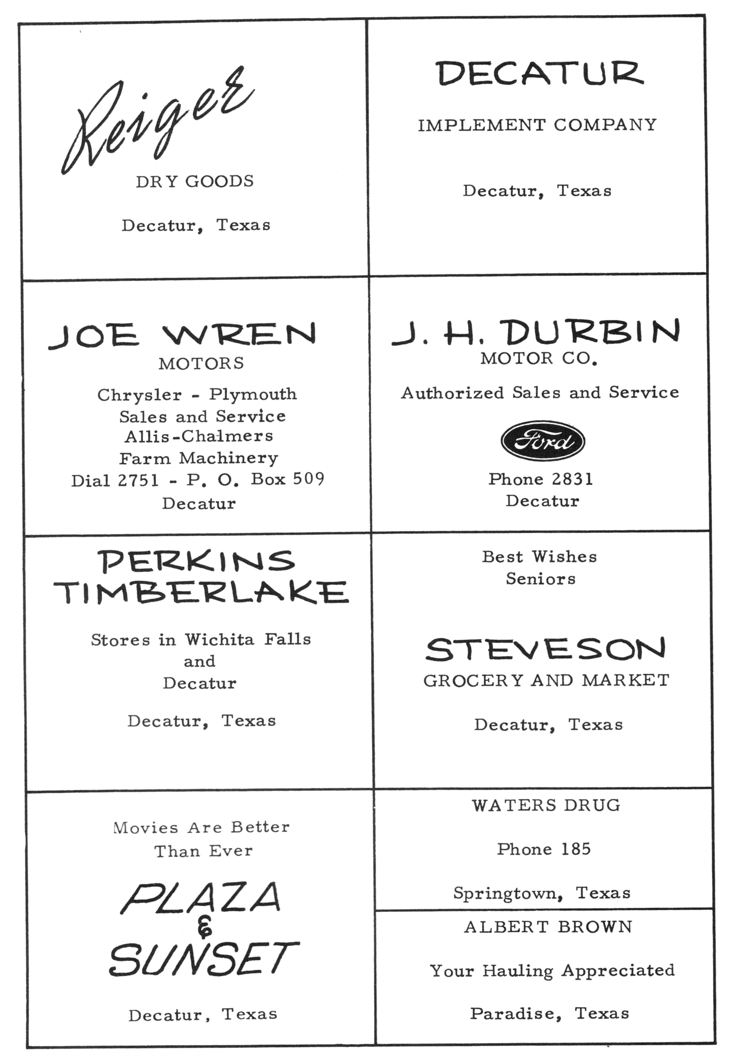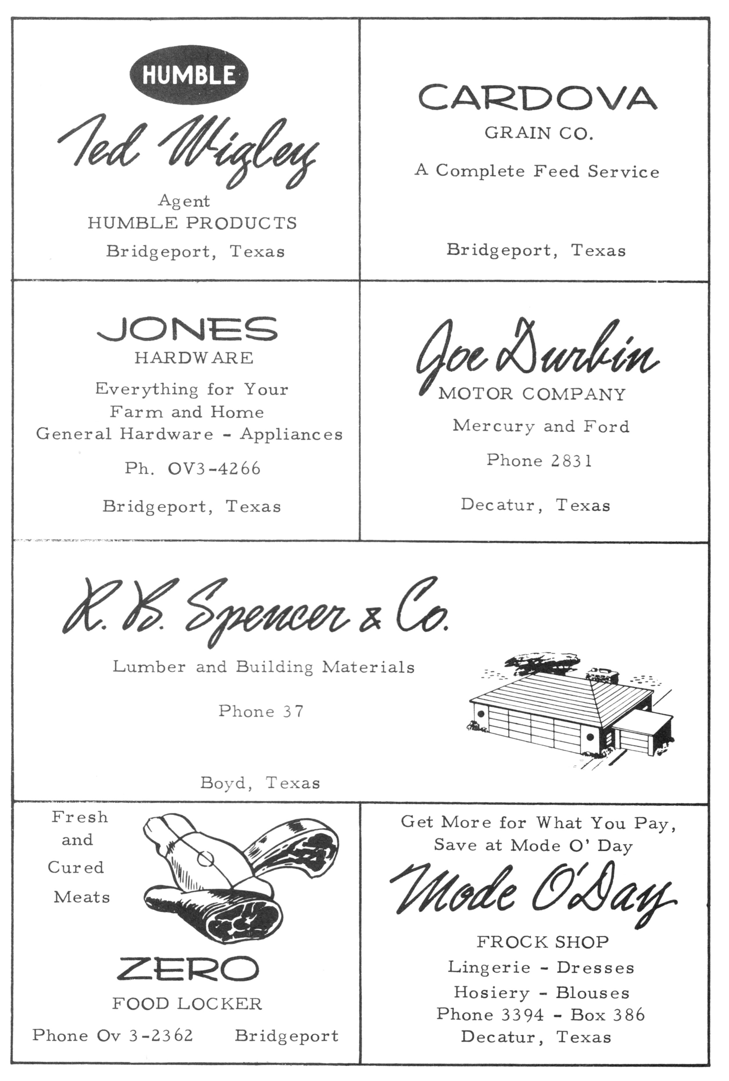 Shamburger Lumber Co. 1958 PHS Advertisement