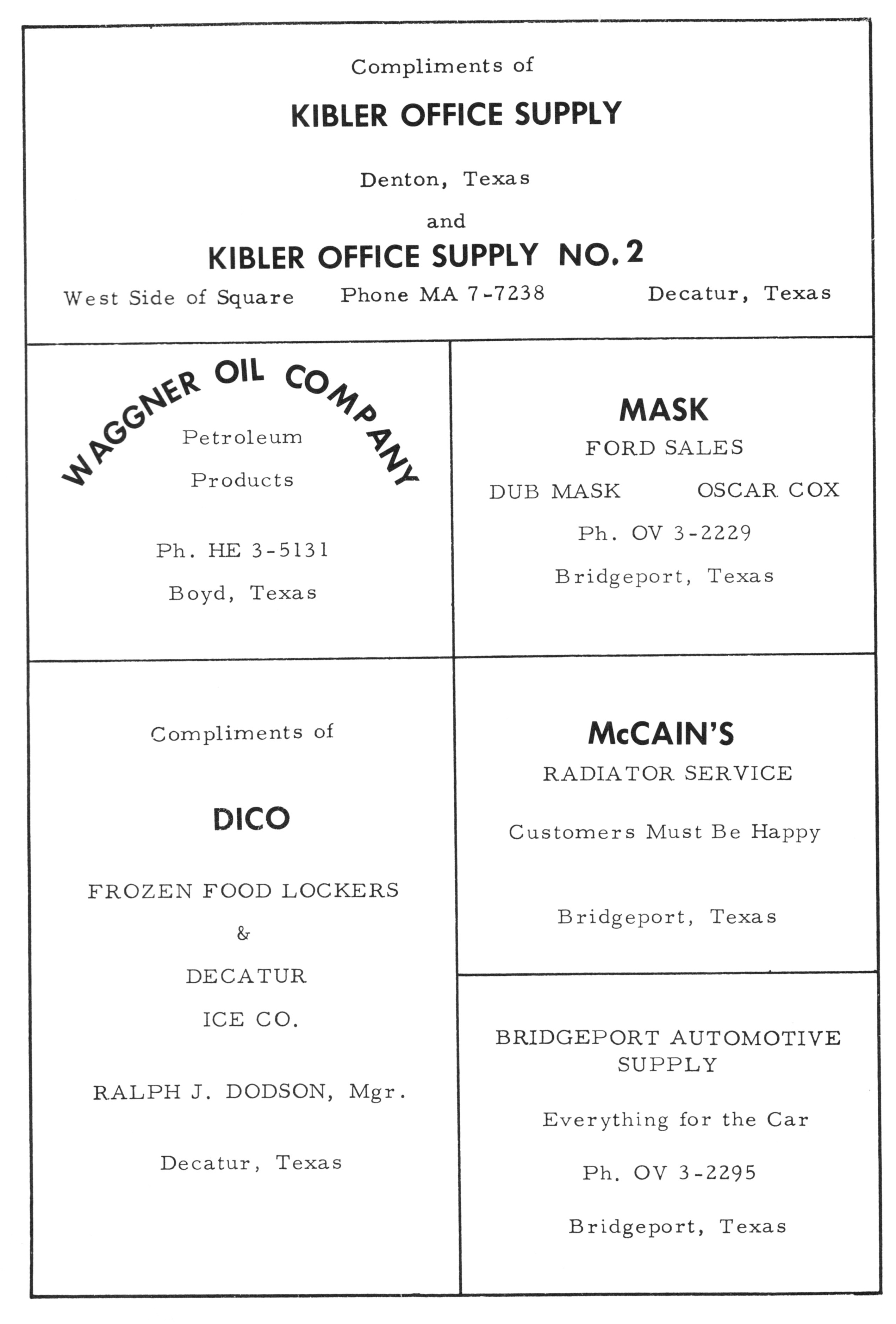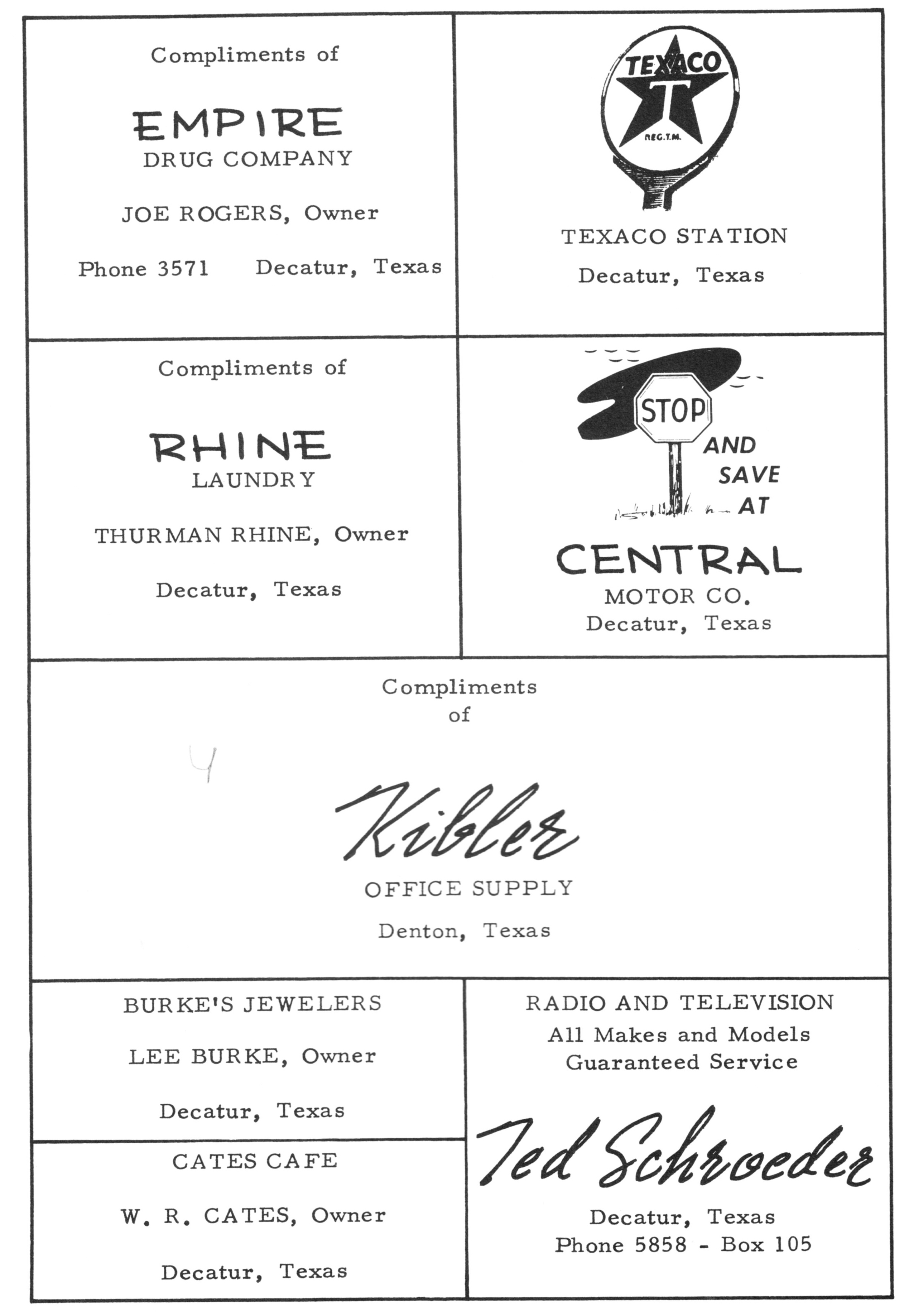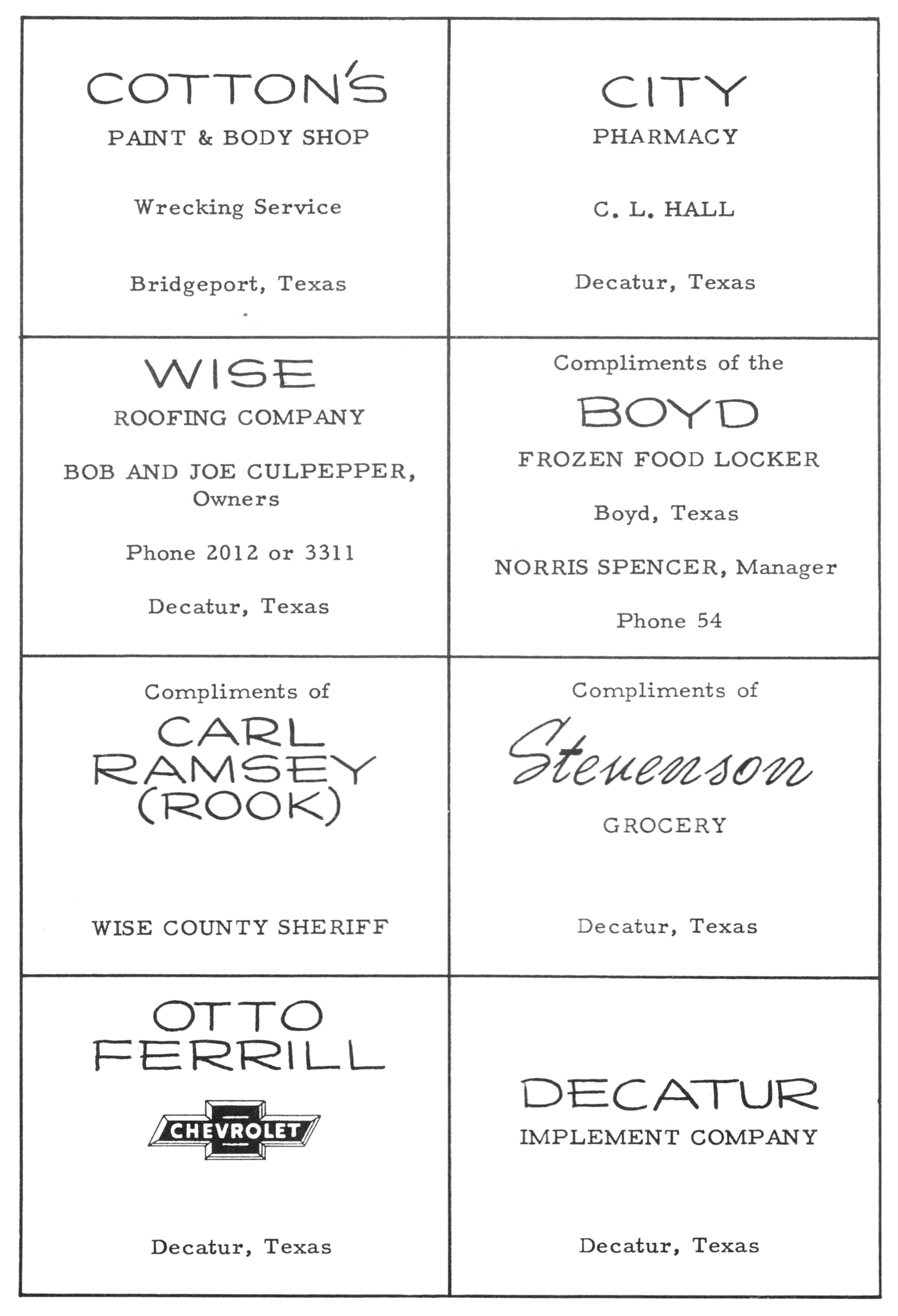 Shamburger Lumber Co. 1955 PHS Advertisement