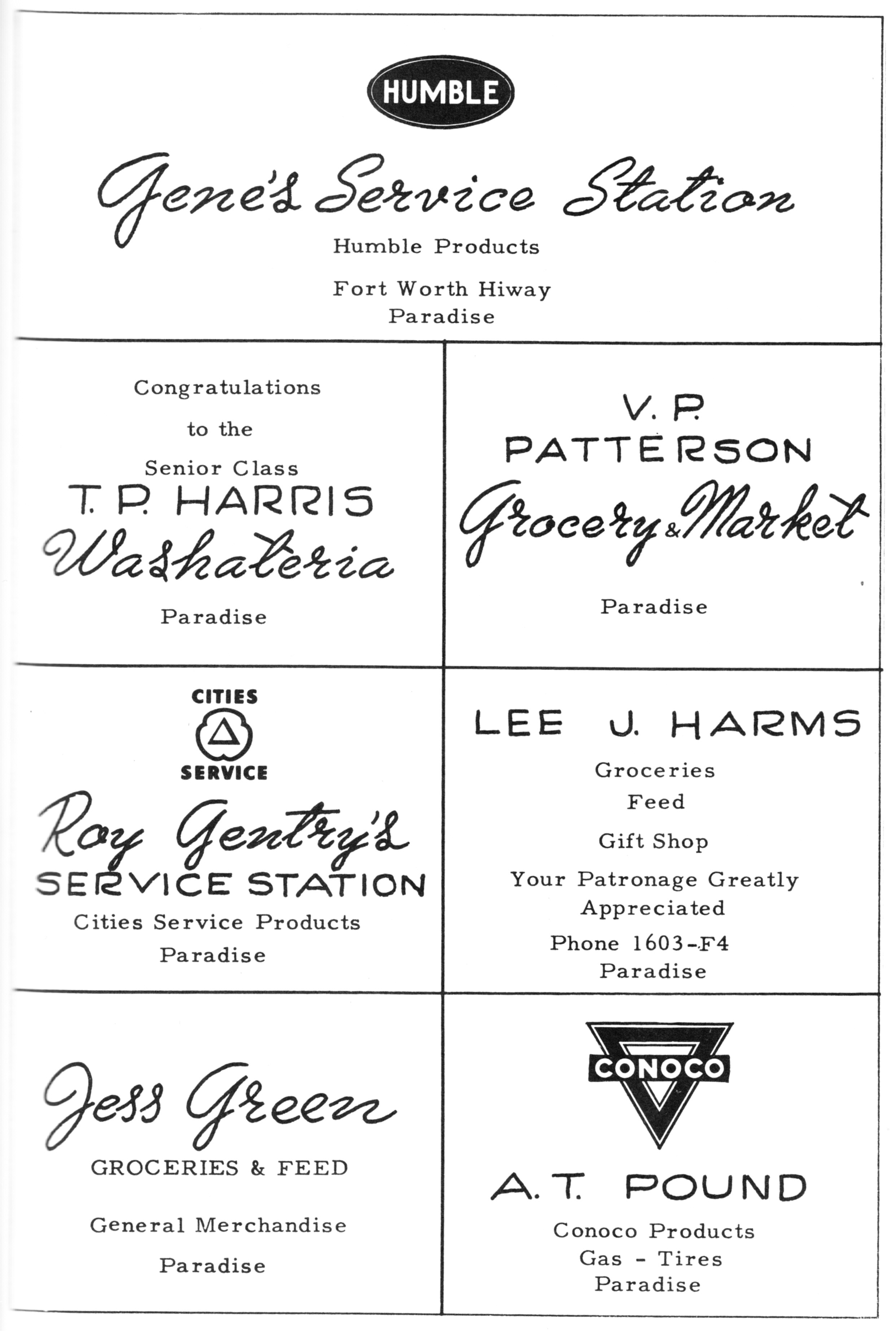 Heathington Texaco 1959 PHS Advertisement